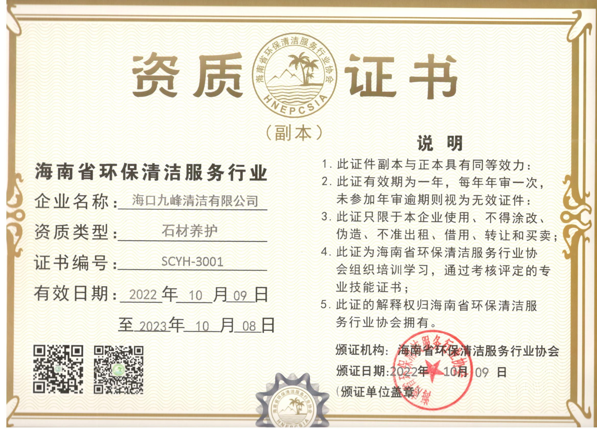 石材養(yǎng)護(hù)資質(zhì)證書