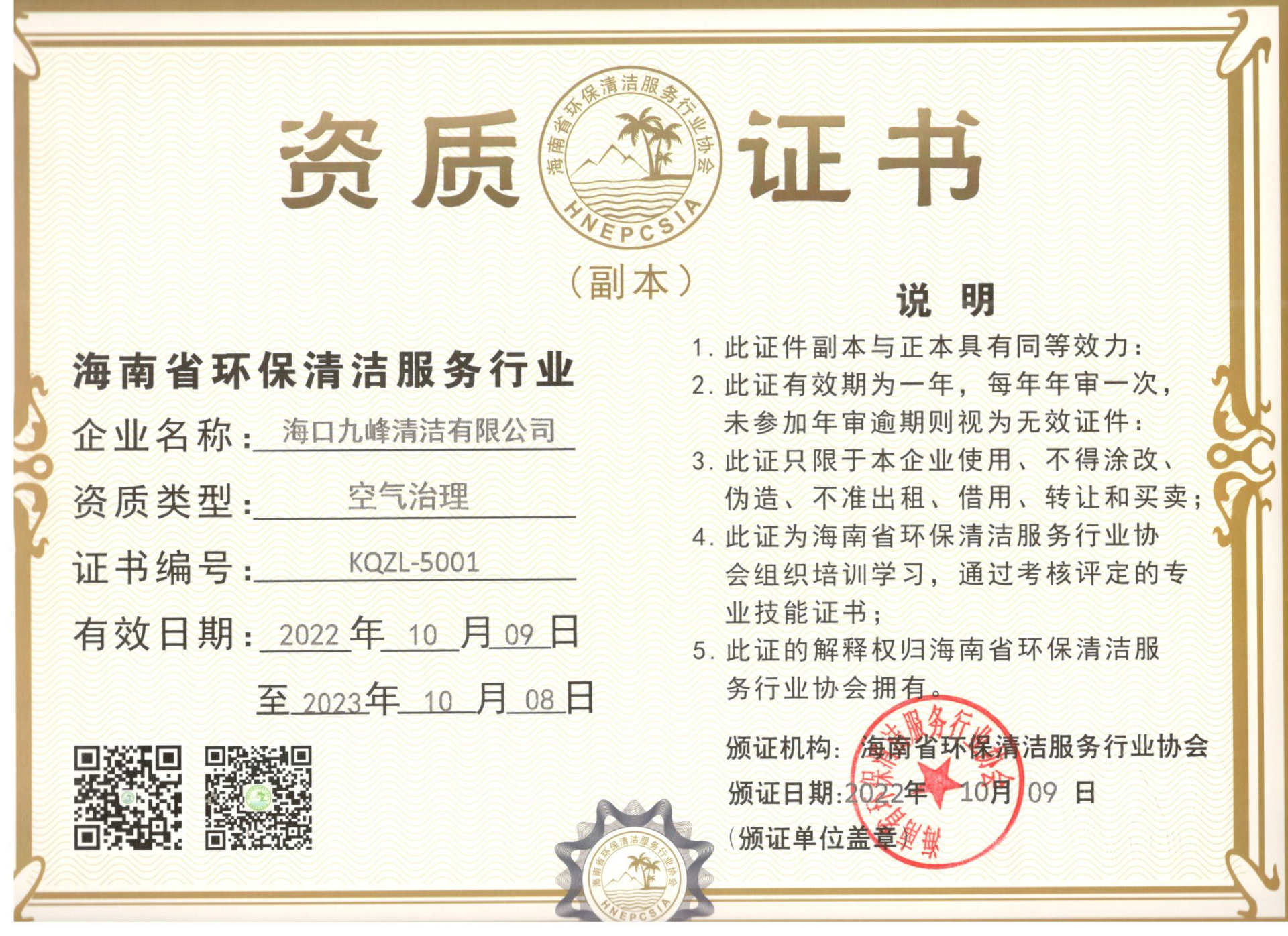 空氣治理資質(zhì)證書