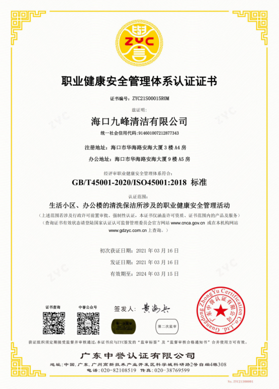 職業(yè)健康安全管理體系認(rèn)證證書